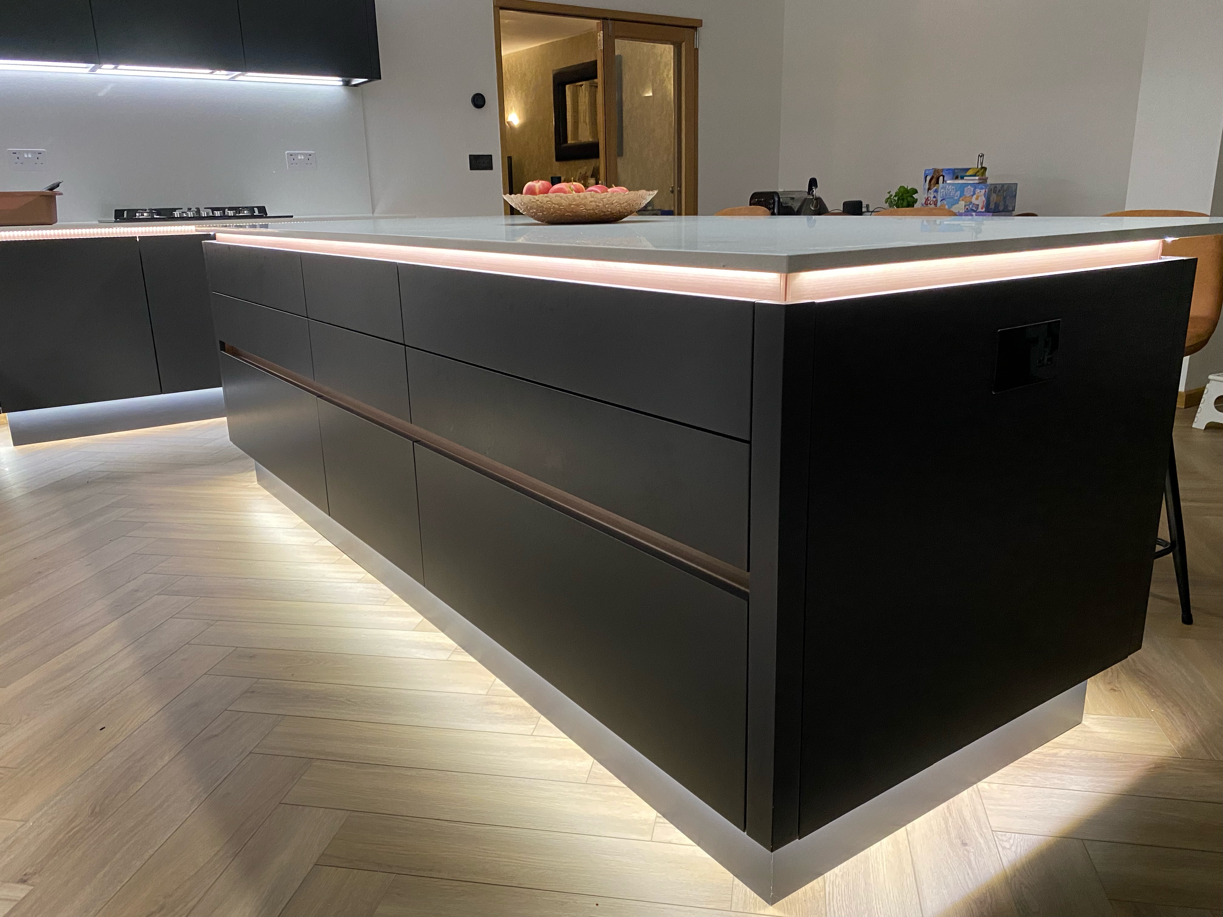 Slab style door manufactured using MDF and painted and finished with a high gloss lacquer