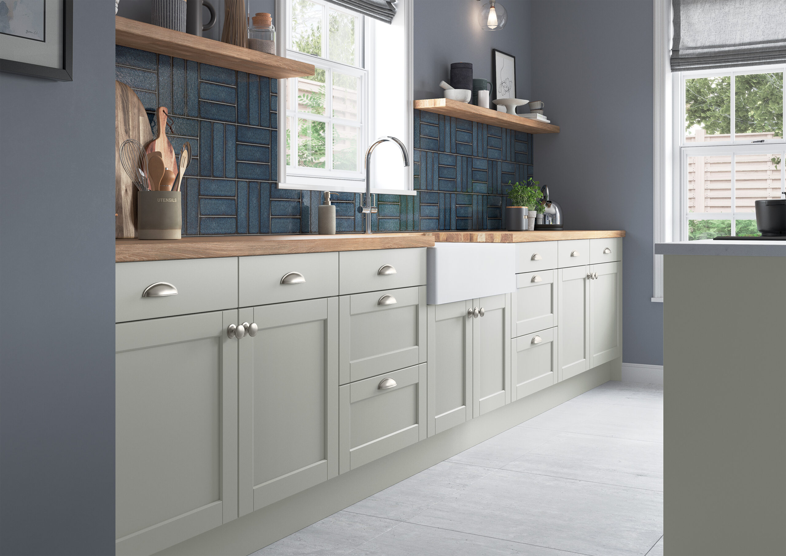 Dawson is a sleek 5-piece shaker door with a 68mm beveled profile and V grooves. It features a durable matte foil finish that mimics paint at a lower cost, offering greater resistance and easier cleaning than most painted doors. A variety of accessories are available for both modern and traditional styles.