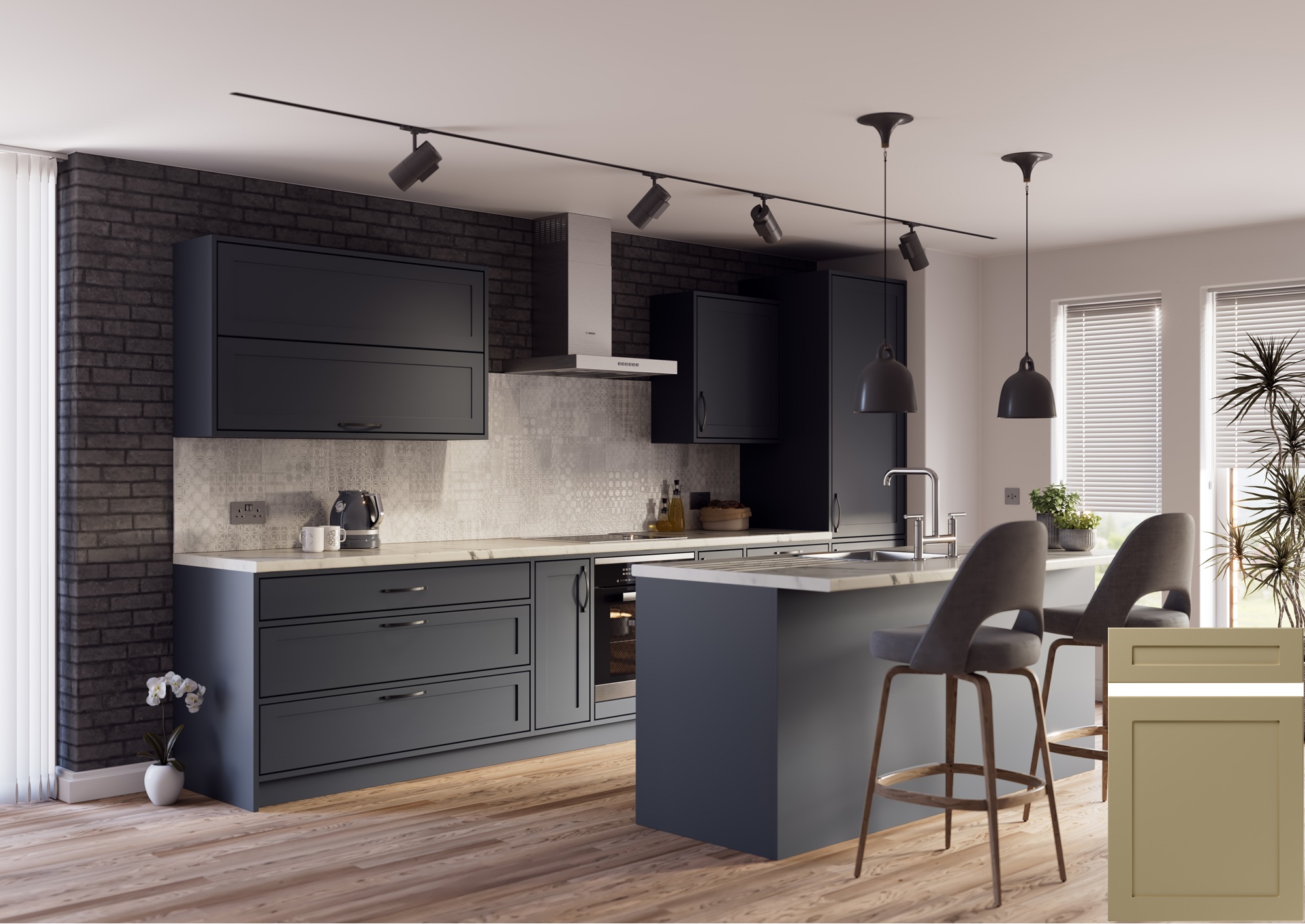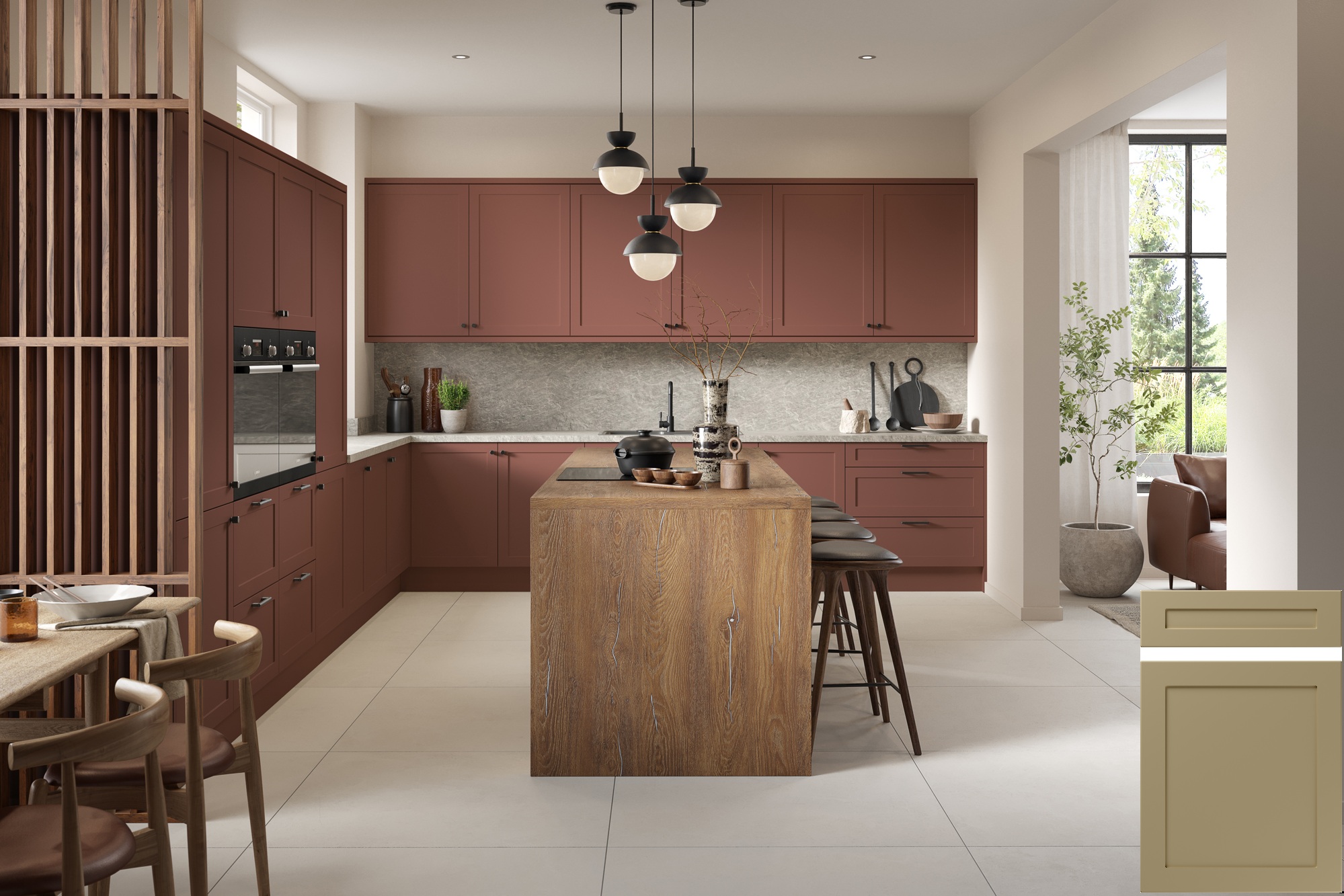 The Mercia door is crafted from a single piece of MDF and features a slim profile Shaker design, encased in durable PVC vinyl. With its frame free from V-Grooves, this door presents a clean and understated appearance. It is offered in 33 distinctive finishes, including ultra matte, high gloss, diverse wood-grains and painted wood-effect vinyls.