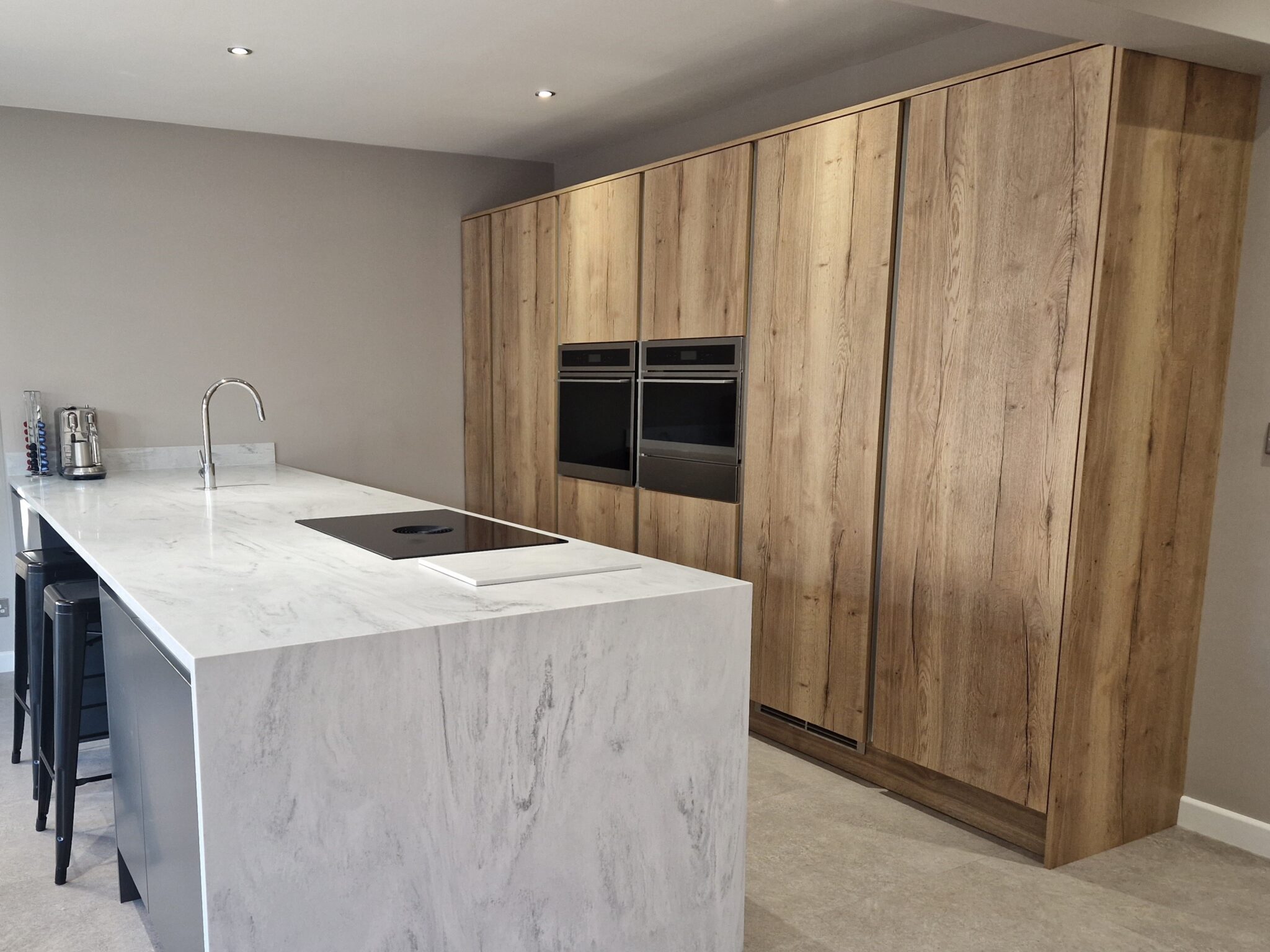 Piatto Ashwood is a slab style door manufactured using high grade laminated board, lipped using a durable ABS colour matched edging. The ashwood effect gives the look and feel of a painted wood but is much more resistant to wear and tear than real painted wood, keeping your kitchen looking new for longer. All our Piatto doors are cut and edged in our own factory and are available in bespoke sizes.